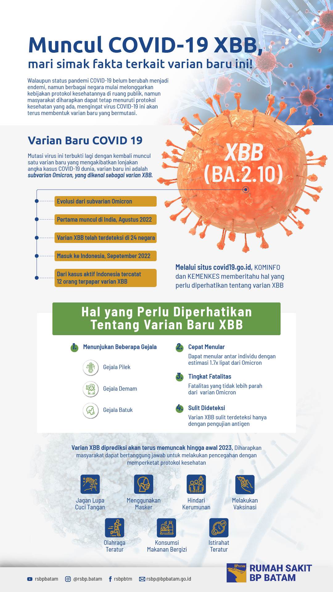 Varian XBB diprediksi akan terus memuncak hingga awal 2023. Oleh karena itu, seluruh masyarakat termasuk Anda, bertanggung jawab untuk melakukan pencegahan dengan kembali memperketat protokol kesehatan. Jangan lupa cuci tangan, menggunakan masker, hindari kerumunan, dan melakukan vaksinasi COVID-19 lengkap dengan segera. Jaga daya tahan tubuh dengan berolahraga, mengonsumsi makanan bergizi, dan istirahat yang cukup agar terhindar dari kuman, bakteri, dan berbagai virus penyakit, termasuk COVID-19.