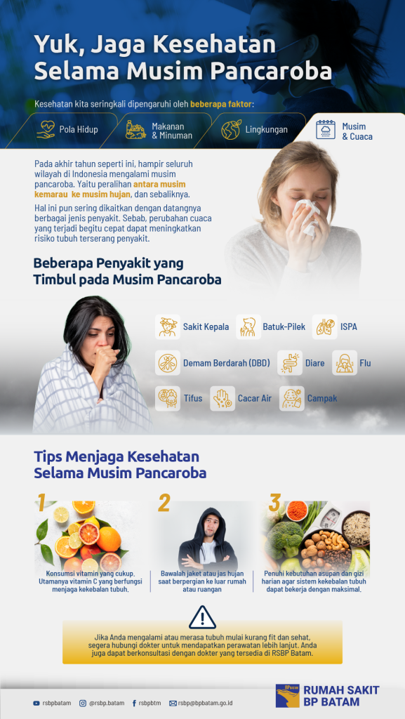 Musim ini pun sering dikaitkan dengan datangnya berbagai jenis penyakit. Sebab, perubahan cuaca yang terjadi begitu cepat dapat meningkatkan risiko tubuh terserang penyakit.